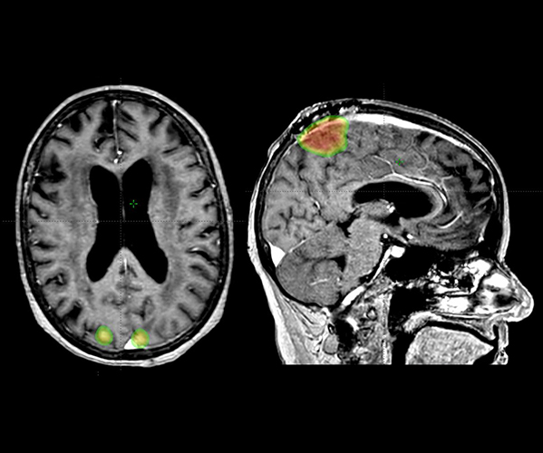 SRS is a form of external beam radiation that delivers high doses of radiation to very small volumes within the brain. SRS is typically given in a single day, but can be delivered over three to five days for larger, more complex tumors. Prior to the development of SRS, many brain tumors were treated with large volumes of radiation covering the entire brain. With SRS, less of the brain is exposed to radiation, resulting in more limited side effects. Additionally, SRS is able to deliver higher doses of radiation to the target than is possible with whole brain radiation, resulting in better outcomes. SRS is typically used to treat cancers that have metastasized to the brain, but is also used for non-cancerous growths such as meningiomas, pituitary adenomas, arteriovenous malformations, and vestibular schwannomas.